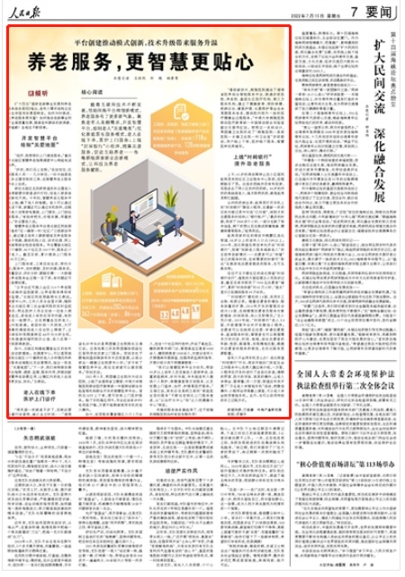 隨著互聯(lián)網(wǎng)技術不斷發(fā)展,借助網(wǎng)絡平臺和創(chuàng)新模式,養(yǎng)老服務有了更多新氣象。聚焦老年人高頻需求,開發(fā)智慧平臺,繪制老人“關愛地圖”;優(yōu)化家庭醫(yī)生服務模式,老人在線下單,醫(yī)護上門服務;上線“時間銀行”小程序,統(tǒng)籌志愿服務,促進互助養(yǎng)老……各地積極探索新業(yè)態(tài)新模式,讓科技為養(yǎng)老服務賦能。
