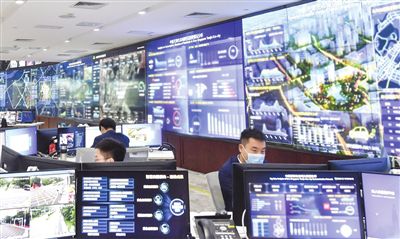 走進(jìn)這座智慧城市的“中樞”──生態(tài)城“城市大腦”運(yùn)營中心,只見以深藍(lán)為主色調(diào)的超大液晶屏鋪滿整面墻,科技感拉滿。屏幕上的數(shù)據(jù)和信息背后,是建設(shè)、環(huán)境、醫(yī)療、應(yīng)急等10多個(gè)領(lǐng)域的實(shí)時(shí)運(yùn)行情況,涉及30余個(gè)系統(tǒng)、400余項(xiàng)指標(biāo)。工作人員目不轉(zhuǎn)睛地監(jiān)測(cè)、記錄、反饋,在做到心中有“數(shù)”的同時(shí),也將城市管理運(yùn)營模式從“被動(dòng)處置”轉(zhuǎn)為“主動(dòng)干預(yù)”。