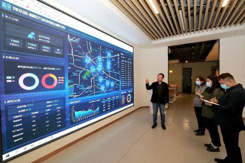 在“智聯(lián)萬家”平臺大屏幕上,有河東區(qū)老人數(shù)量情況、低保補貼和居家養(yǎng)老補貼人數(shù)、當前物聯(lián)設備發(fā)放總數(shù)及當前在線數(shù)量和位置,以及當前出現(xiàn)的異常提醒等。