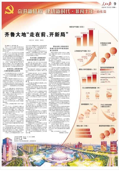 十年奮斗,山東發(fā)展基礎(chǔ)更加堅(jiān)實(shí):三次產(chǎn)業(yè)齊頭并進(jìn),供需兩端協(xié)同發(fā)力,新老動(dòng)能相得益彰,各類企業(yè)比翼齊飛,陸海資源統(tǒng)籌開發(fā),交通運(yùn)輸四通八達(dá),城鄉(xiāng)區(qū)域均衡發(fā)展,對(duì)外開放提檔升級(jí),人文沃土深度耕作……