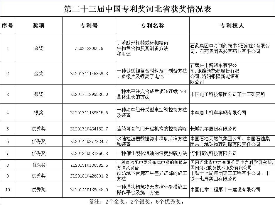 河北十項(xiàng)專利獲中國(guó)專利獎(jiǎng)