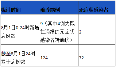 人民網(wǎng)成都8月2日電 (王波)據(jù)成都市衛(wèi)健委消息,8月1日0-24時(shí),“07·20”疫情新增本土確診病例9例(其中4例為既往通報(bào)的無(wú)癥狀感染者轉(zhuǎn)確診),新增本土無(wú)癥狀感染者2例。截至8月1日24時(shí),本起疫情累計(jì)報(bào)告本土確診病例124例,本土無(wú)癥狀感染者72例。