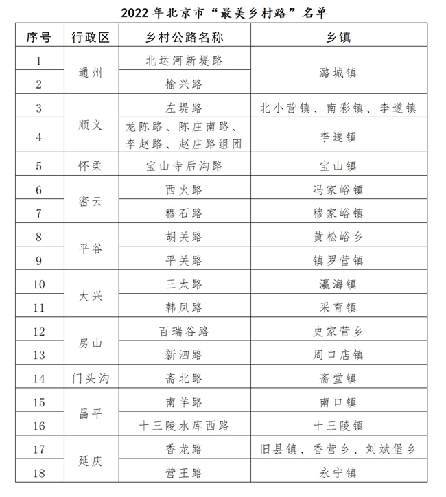 北京評(píng)選出18條“最美鄉(xiāng)村路” 到2025年將創(chuàng)建1500公里美麗鄉(xiāng)村路