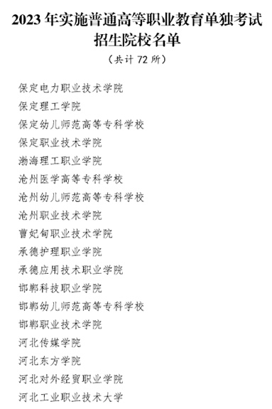 人民網石家莊12月3日電 (楊文娟)近日,河北省教育廳印發(fā)了關于做好2023年普通高等職業(yè)教育單獨考試招生工作的通知。通知明確,2023年高職單招采取統(tǒng)考計劃和對口計劃分開編列的方式進行,河北實施高職單招院校共計72所。