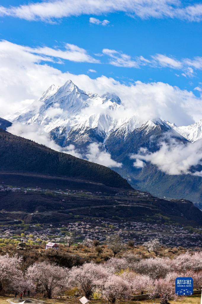 俯瞰索松村的桃花林(4月5日攝)。新華社記者 姜帆 攝