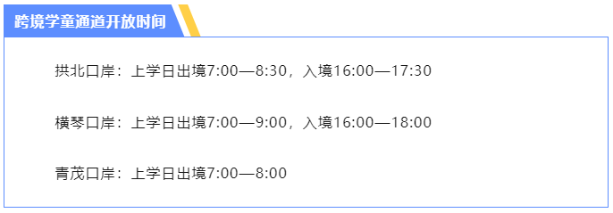 跨境學(xué)童通道開(kāi)放時(shí)間。圖片來(lái)源:珠海邊檢總站官方微信截圖