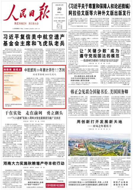 人民日?qǐng)?bào)|中歐班列10年累計(jì)開行7.7萬列 運(yùn)送貨值超3400億美元