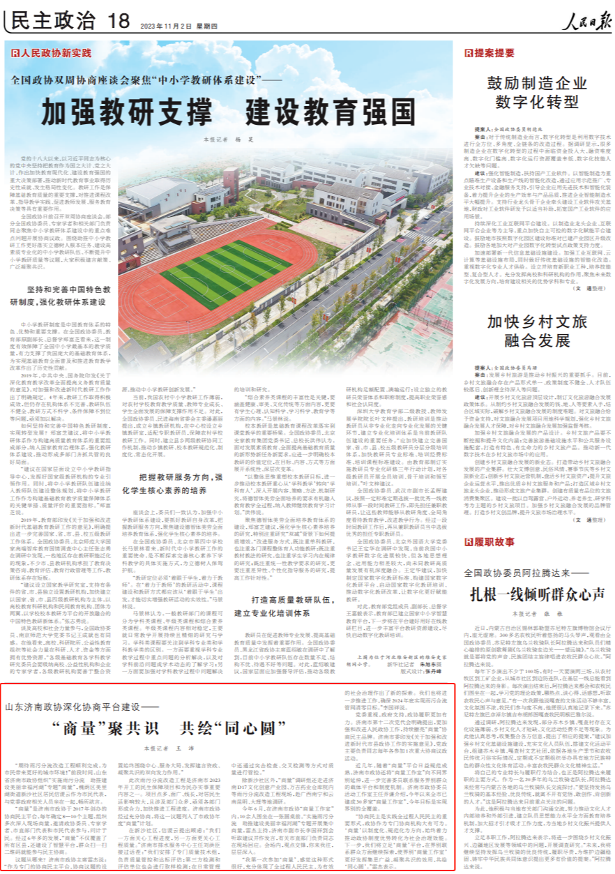 人民日報點贊濟南政協(xié)深化協(xié)商平臺建設(shè):“商量”聚共識 共繪“同心圓”