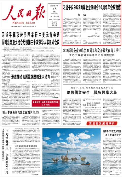 人民日報(bào)丨習(xí)近平向2023兩岸企業(yè)家峰會10周年年會致賀信