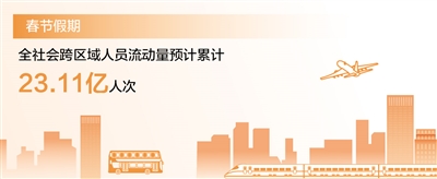 春節(jié)假期全社會跨區(qū)域人員流動量預(yù)計(jì)累計(jì)23.11億人次