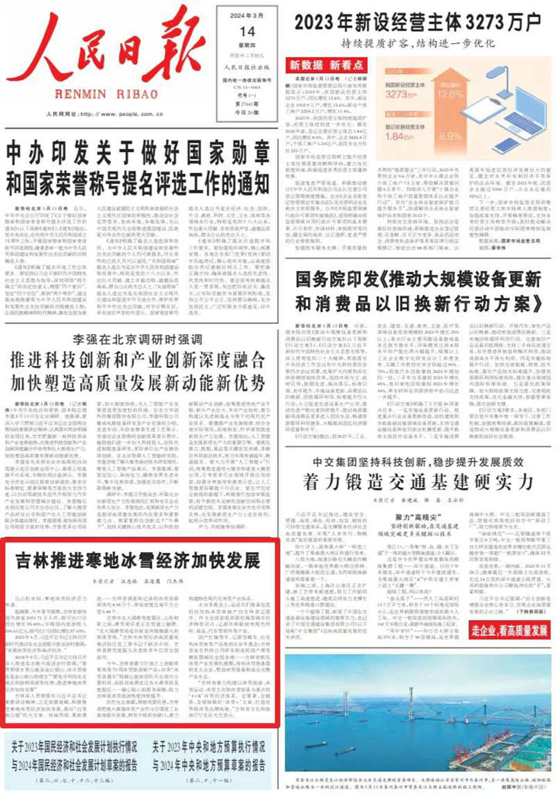 人民日報頭版聚焦吉林:寒地冰雪經(jīng)濟(jì)加快發(fā)展