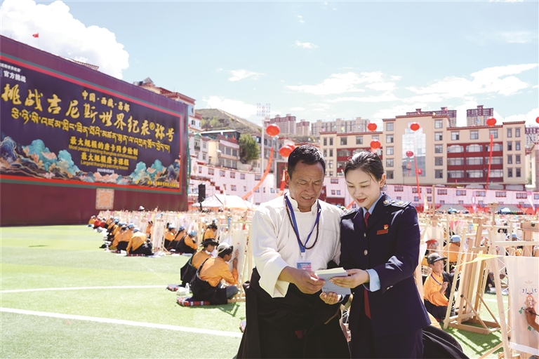 商報訊(通訊員 德西卓瑪 記者 芮怡星)當(dāng)1138名畫師在西藏昌都市卡若區(qū)共同創(chuàng)造“最大規(guī)模唐卡課程”和“最大規(guī)模的唐卡同步繪制”兩項吉尼斯世界紀(jì)錄時,一抹“稅務(wù)藍(lán)”也悄然融入這片藝術(shù)的海洋。國家稅務(wù)總局昌都市稅務(wù)局“卓卓稅宣小分隊”穿梭其間,將精準(zhǔn)的稅惠政策送至活動現(xiàn)場,為這場文化盛事增添了一抹特別的“稅務(wù)藍(lán)”。