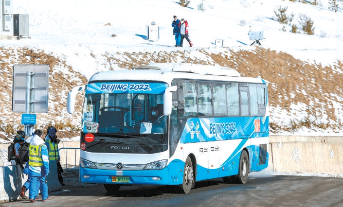 服務(wù)于北京冬奧會張家口賽區(qū)的福田汽車氫燃料電池客車。本報記者 潘之望攝