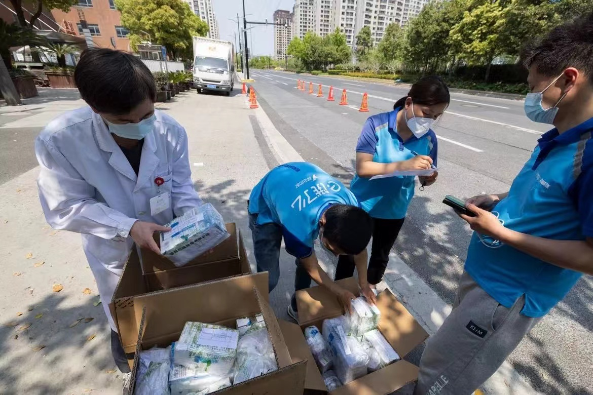 應(yīng)急特需服務(wù)人員為市民送藥