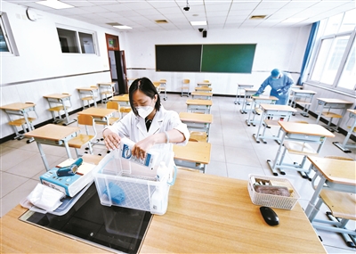 今年高考期間,作為常規(guī)考點之一的東直門中學(xué)考點將設(shè)置13個常規(guī)考場、3個備用考場。熊勁介紹,當(dāng)遇到發(fā)熱考生時,考點考務(wù)人員會立即將發(fā)熱考生通過專門進(jìn)口帶進(jìn)考點內(nèi)的隔離室,進(jìn)行健康觀察。為了防止交叉,考點為發(fā)熱考生設(shè)置專門進(jìn)入考點的通道。