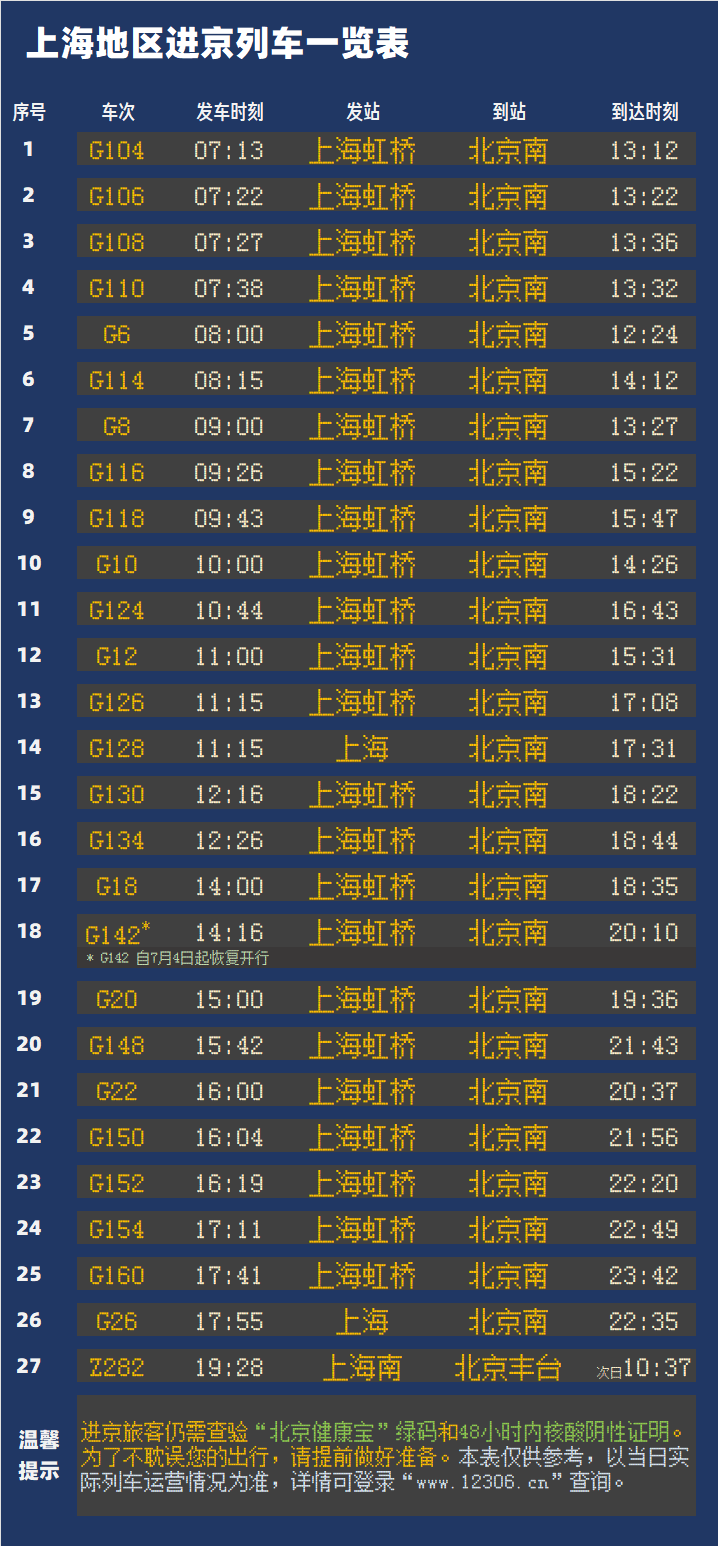 央廣網(wǎng)北京7月4日消息 據(jù)中國鐵路上海站消息,隨著上海疫情防控形勢持續(xù)向好,日前,鐵路部門逐步恢復(fù)開行上海地區(qū)進(jìn)京列車。