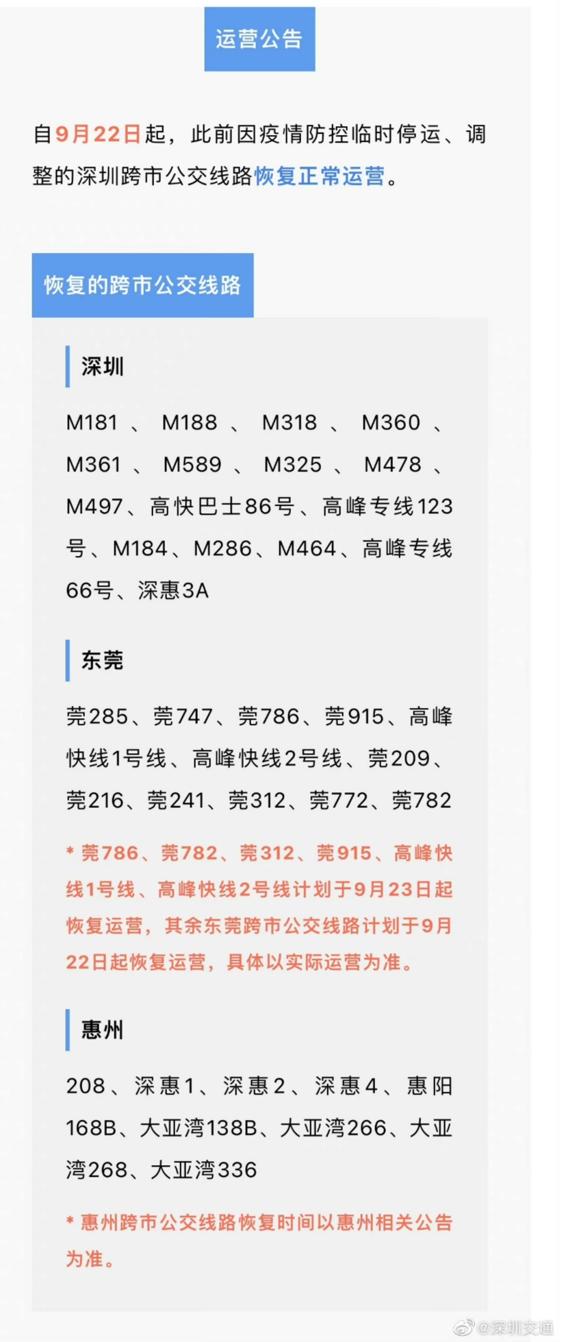 自9月22日起,深圳跨市公交線路恢復(fù)運(yùn)營