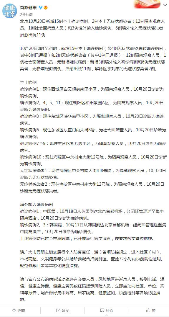 北京10月20日新增15例本土確診病例、2例本土無(wú)癥狀感染者
