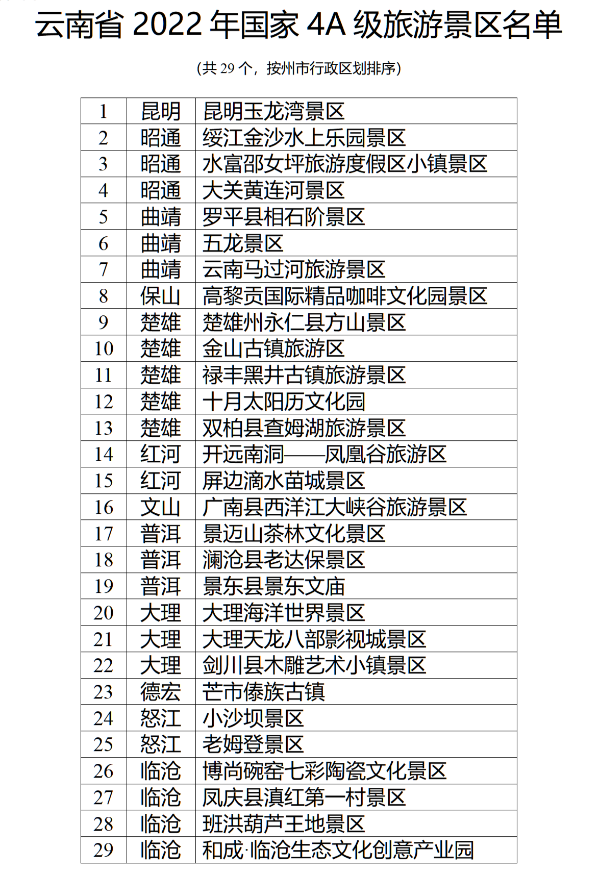 云南省2022年確定29家國(guó)家4A級(jí)旅游景區(qū)