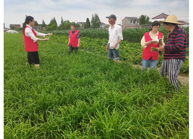 農技志愿者在田頭宣傳韭菜無公害種植技術(央廣網發(fā) 通訊員供圖)