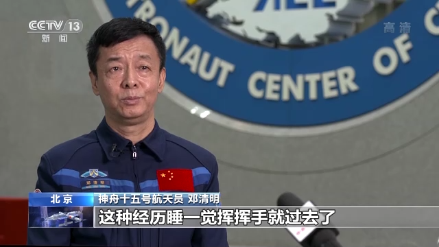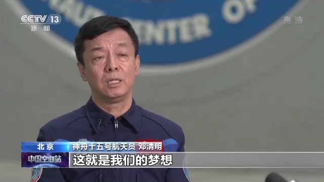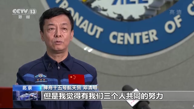 神舟十五號(hào)航天員 鄧清明:壓力是肯定有,但是我覺得有我們?nèi)齻€(gè)人共同的努力,有天地之間大協(xié)作,有地面的支持,這種壓力不算什么。我還是喜歡干有挑戰(zhàn)性的活,人生因奮斗而精彩,講的就是這個(gè)意思。