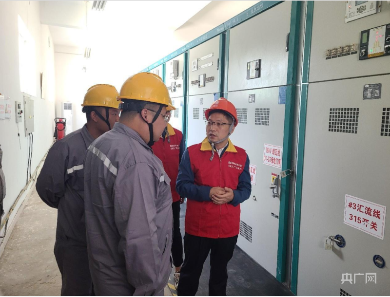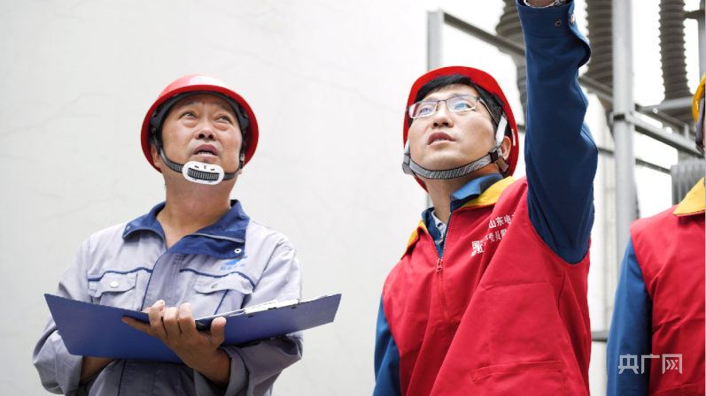 朱宗鋒(右側(cè))到變電現(xiàn)場(chǎng)了解情況(央廣網(wǎng)發(fā) 劉天睿攝)