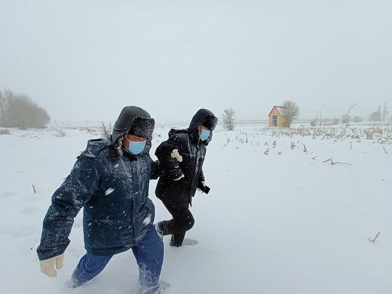 國網(wǎng)扎賚特旗供電公司配電運(yùn)檢人員冒雪對(duì)設(shè)備巡視(馬曉飛 攝)