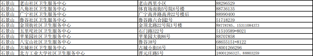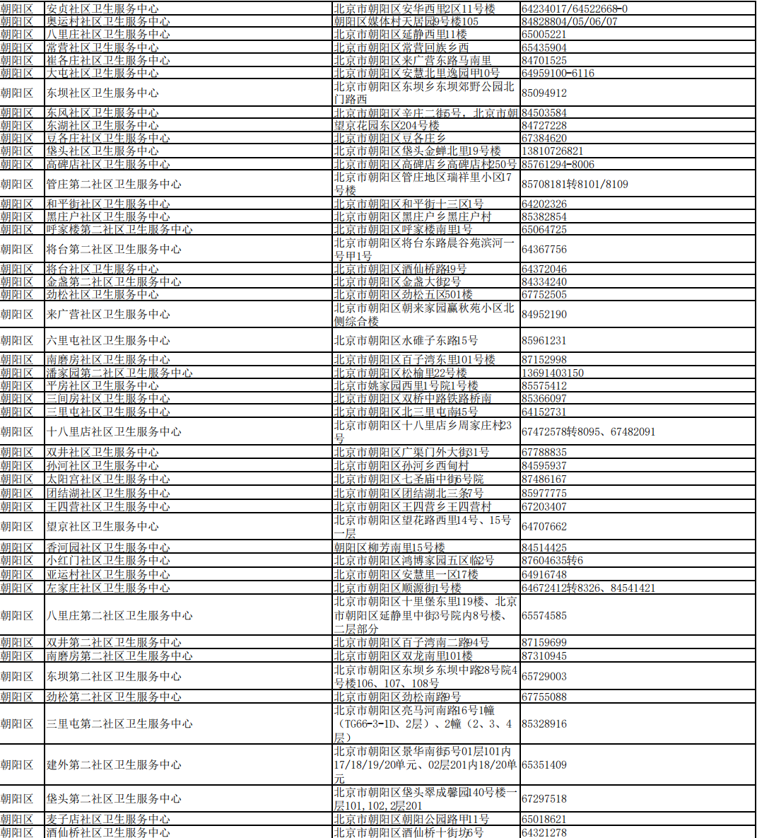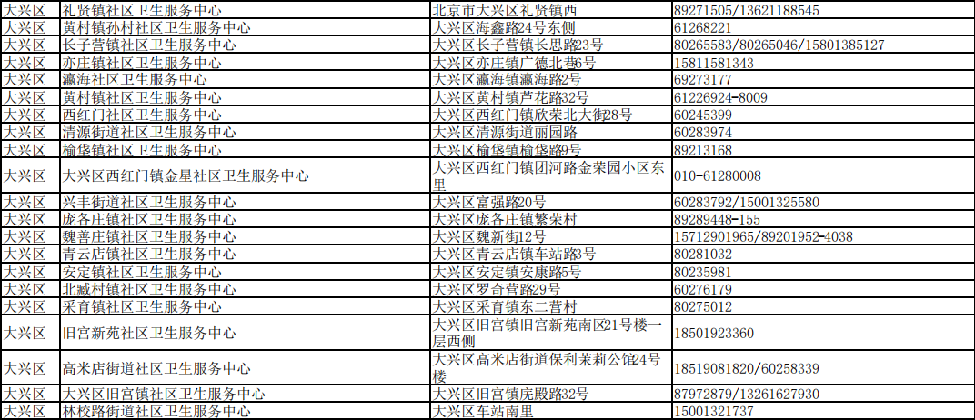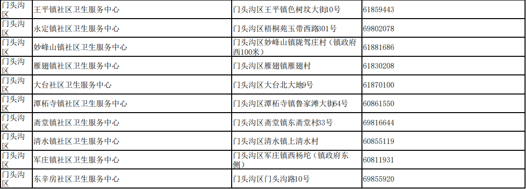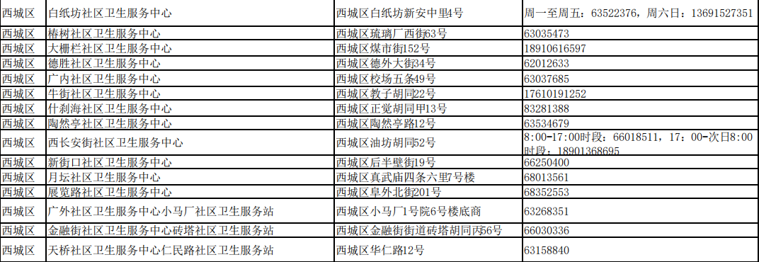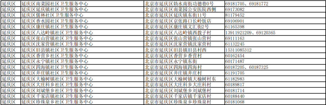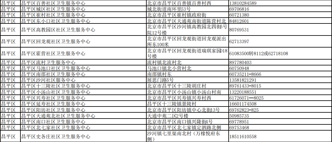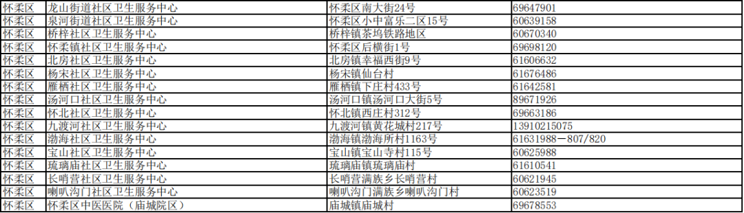 北京市接診發(fā)熱等11類癥狀患者社區(qū)衛(wèi)生服務(wù)中心名單