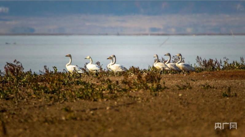 數(shù)百只小天鵝自由自在地徜徉于湖畔淺灘(央廣網(wǎng)發(fā) 陳扶南 攝)