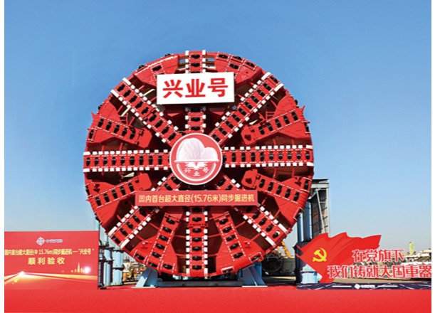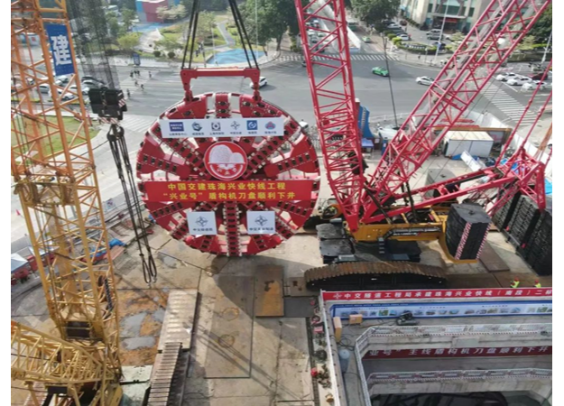 珠海興業(yè)快線隧道工程是未來連通港珠澳大橋和深中通道,把珠海市打造成為“粵港澳交通樞紐”的重要工程。盾構(gòu)隧道長度僅1740米,但地質(zhì)情況極為復(fù)雜,其中:硬巖段占比超過70%,被稱“地質(zhì)博物館”,且為首個(gè)國內(nèi)直徑最大雙層疊落盾構(gòu)工程,雙層疊落長約604米,盾構(gòu)法施工面臨不少世界級(jí)難題。為順利完成這項(xiàng)重大工程,中交天和立足自主研發(fā),著眼科技創(chuàng)新,為適應(yīng)在硬巖地質(zhì)中提高掘進(jìn)速度,實(shí)現(xiàn)隧道掘進(jìn)和管片拼裝同步施工,成功研制中國首臺(tái)超大直徑同步掘進(jìn)機(jī)“興業(yè)號(hào)”。該掘進(jìn)機(jī)國產(chǎn)化率達(dá)98%以上、刀盤直徑15.76米,全長超130米,攻克了許多難以想象的世界級(jí)難題。