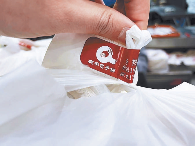 傍晚6時(shí)左右,廣渠門內(nèi)地鐵口附近的慶豐包子鋪訂單漸漸多了起來。記者現(xiàn)場(chǎng)看到,服務(wù)員把蒸好的包子和其它菜品裝進(jìn)外賣盒后,馬上用專屬的外賣袋和封簽將食品“封死”。一眼望去,桌上七八份外賣都貼著帶有“慶豐包子鋪”標(biāo)志的專屬紅色封簽。
