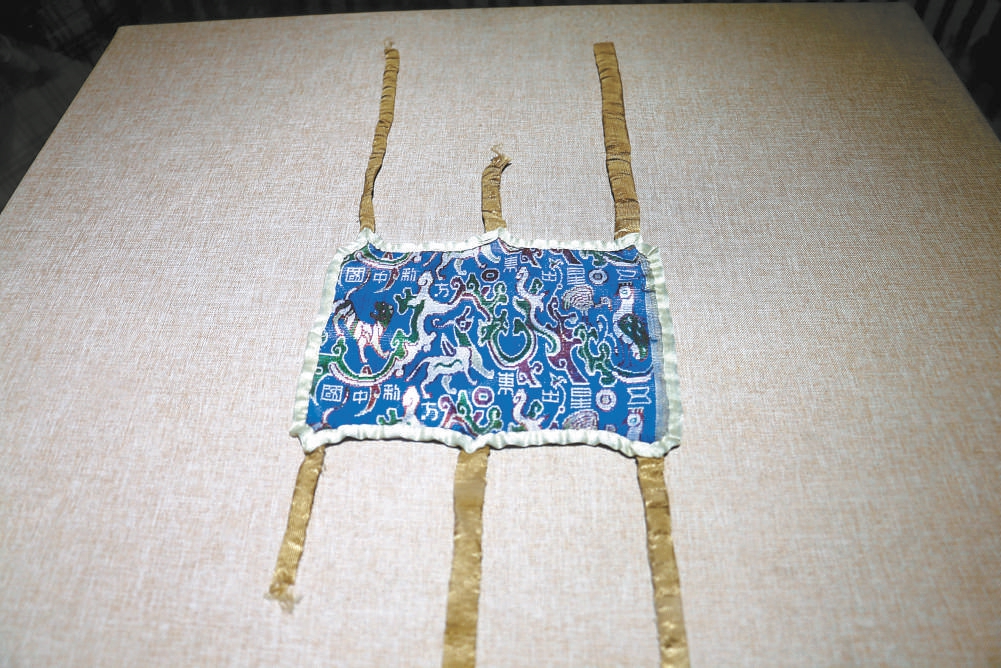 漢代“五星出東方利中國”錦護膊(復(fù)制品)。本報記者 王廣燕攝