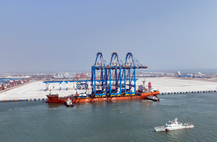 人民網(wǎng)欽州1月3日電 近日,載運(yùn)著3臺(tái)超大型集裝箱碼頭岸橋和1臺(tái)軌道吊的特種運(yùn)輸船“振華31”輪安全進(jìn)入欽州港。至此,欽州自動(dòng)化集裝箱碼頭二期20萬(wàn)噸碼頭項(xiàng)目進(jìn)入岸橋設(shè)備安裝和自動(dòng)化調(diào)試工作階段。