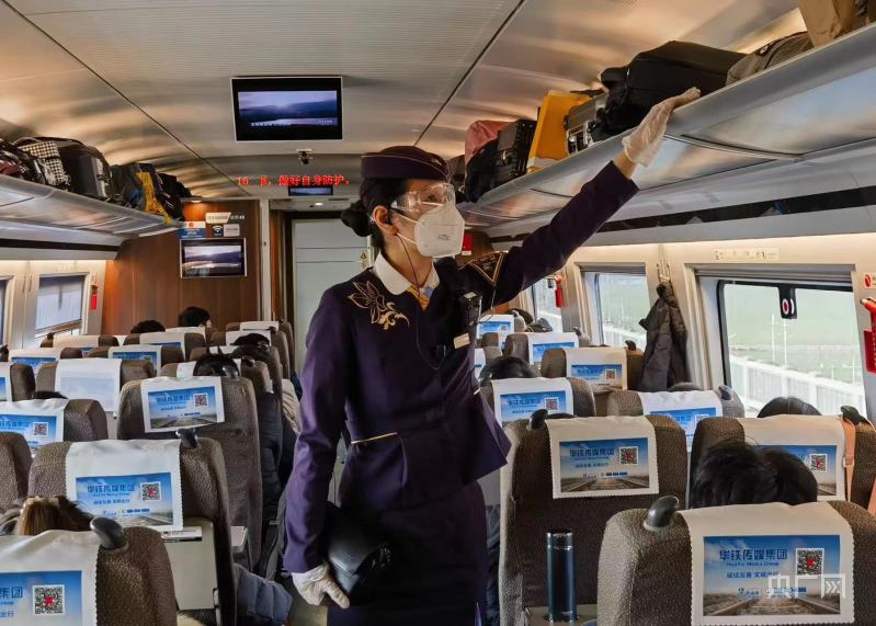 1月10日,春運(yùn)第4天,鐵路客流比平時(shí)高了近三成。重聯(lián)后的G1333次列車的前聯(lián)列車長(zhǎng)彭昊用對(duì)講機(jī)提前對(duì)后聯(lián)列車長(zhǎng)洪媛囑咐道。