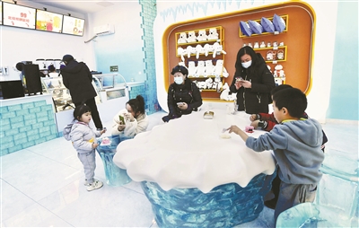 在觀摩體驗(yàn)區(qū),游客可以觀看有趣的制冰過程。游客熱衷在拍照打卡區(qū)和白熊雕塑合影,留下一段美好的記憶。在周邊商品展示區(qū),各類周邊商品陳列于此,供游客朋友挑選采購。