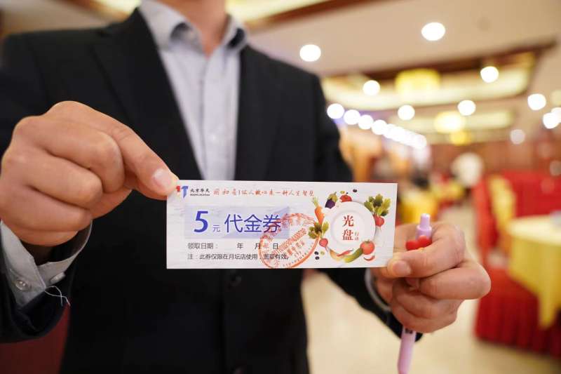 為鼓勵顧客打包剩余餐食,同和居月壇店會發(fā)放代金券。新京報(bào)記者 王飛 攝
