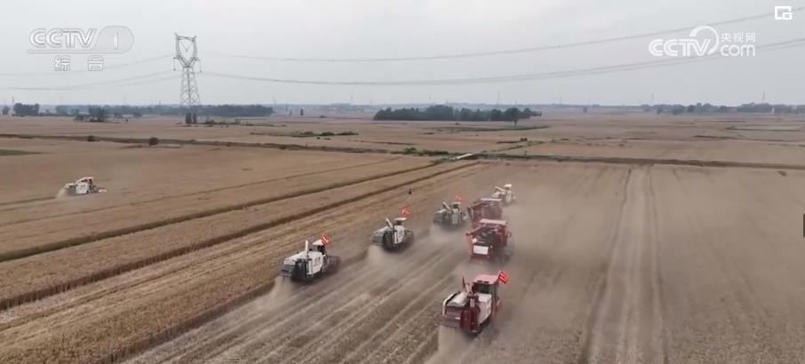 總臺(tái)央視記者 陳燁煒:這里是湖北省襄陽市的羅咀村,在我身后幾臺(tái)大型的聯(lián)合收割機(jī)在金色的麥田里來回穿梭,伴隨收割機(jī)的轟鳴聲,金燦燦的麥穗和麥稈分離,一粒粒金黃色的小麥進(jìn)入了收割機(jī)的糧倉當(dāng)中。