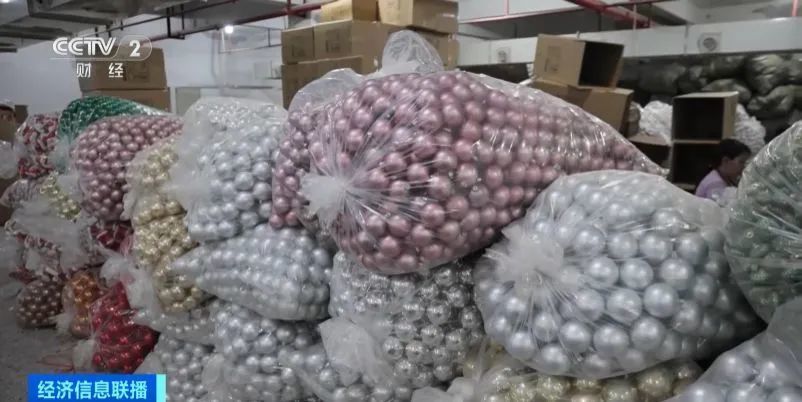 在義烏一家生產(chǎn)圣誕球的企業(yè)里,工人們忙著把剛剛組裝完的成品運(yùn)往倉(cāng)庫(kù)。負(fù)責(zé)人告訴記者,今年他們的訂單同比增長(zhǎng)30%左右。