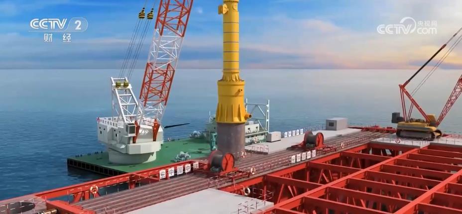 為了給大功率鉆機(jī)搭建一個(gè)穩(wěn)定的施工平臺(tái),2023年年初,一個(gè)重達(dá)7600噸的自浮式鉆孔平臺(tái)抵達(dá)5號(hào)墩位。這個(gè)全新研發(fā)的鉆孔平臺(tái),平面尺寸超過(guò)13000平方米,相當(dāng)于31個(gè)標(biāo)準(zhǔn)籃球場(chǎng)大小,定位誤差卻控制在30厘米以內(nèi),角度偏差小于1度。這在世界橋梁建設(shè)中還是首次嘗試。