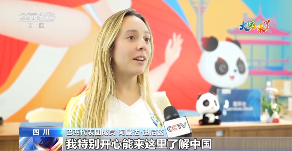 巴西代表團(tuán)成員 阿曼達(dá)·迪尼茲:中國真是個(gè)漂亮的國家,我特別開心能來這里了解中國、感受文化,認(rèn)識(shí)大家。這里的食物很美味,城市也很漂亮。成都讓我印象太深刻了。