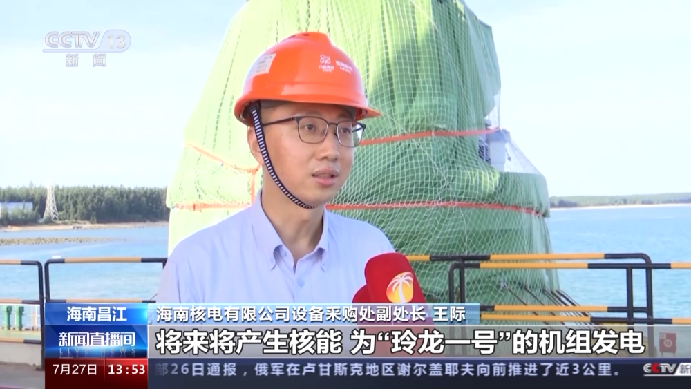海南核電有限公司設(shè)備采購處副處長王際:一體化反應(yīng)堆壓力容器是“玲龍一號”的最為核心的部件,將來將產(chǎn)生核能,為“玲龍一號”的機(jī)組發(fā)電和多用途應(yīng)用提供能源,“玲龍一號”核電項目預(yù)計在2026年的上半年投產(chǎn)發(fā)電。