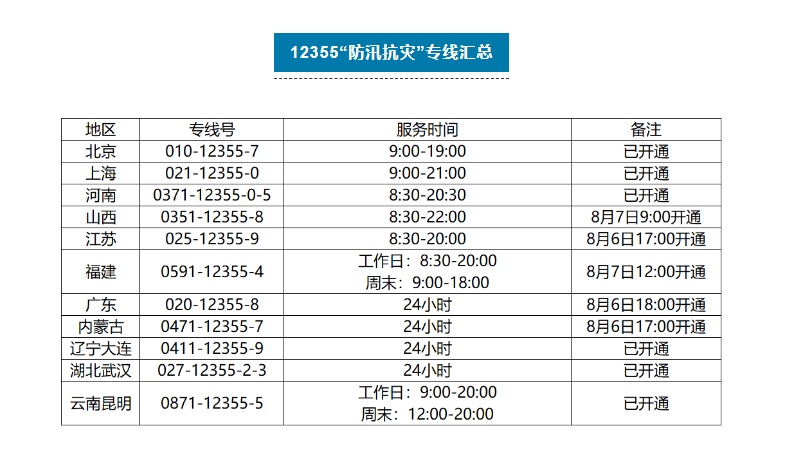 12355“防汛抗災(zāi)”專線匯總