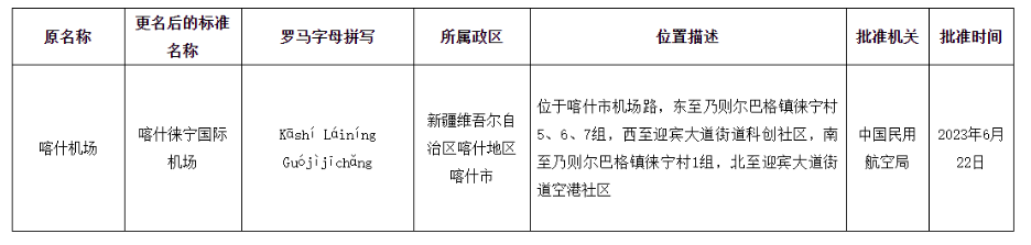 據(jù)民政部發(fā)布公告,經(jīng)中國民用航空局批準,喀什機場更名為喀什徠寧國際機場。