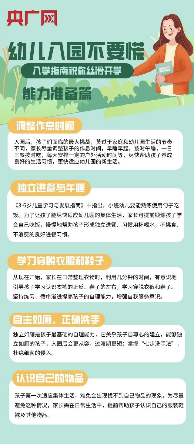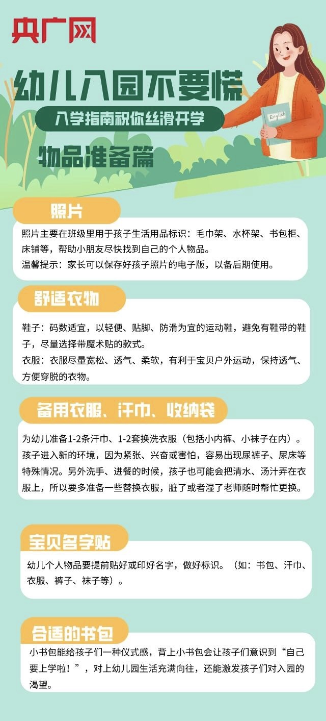 央廣網(wǎng)北京8月27日消息 幼兒園是人生的第一所學校,在這里,孩子們將開啟真正的學習生活和社會生活??梢哉f,這一階段對于孩子的性格塑造和習慣養(yǎng)成都有著十分重要的影響。那么幼兒入園前,新手爸媽應(yīng)該做好哪些準備工作呢?別慌,這份入學指南請收藏!