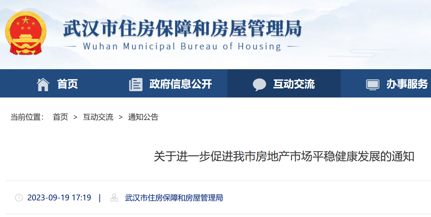 央廣網(wǎng)北京9月20日消息 據(jù)武漢市住房保障和房屋管理局網(wǎng)站消息,9月19日,武漢市房管局發(fā)布《關(guān)于進(jìn)一步促進(jìn)我市房地產(chǎn)市場平穩(wěn)健康發(fā)展的通知》(以下簡稱《通知》),《通知》顯示,自2023年9月19日起,武漢市取消二環(huán)線以內(nèi)住房限購政策,滿足居民剛性和改善性購房需求。