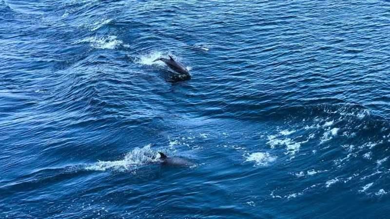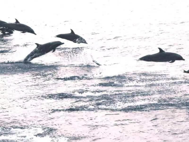節(jié)日伴航 海警局巡邏途中遇見大批海豚