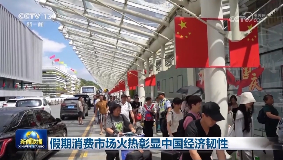 央視網(wǎng)消息(新聞聯(lián)播):中秋國慶假期,強勁需求和優(yōu)質供給雙向發(fā)力,城鄉(xiāng)市場人氣旺盛、活力澎湃,有力釋放多層次多樣化消費需求,彰顯出中國經(jīng)濟的強大韌性。