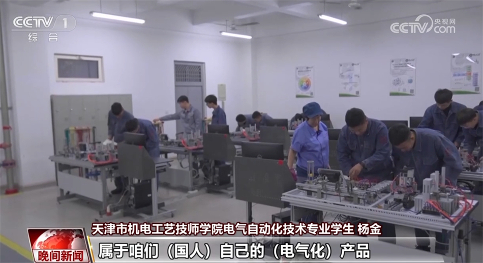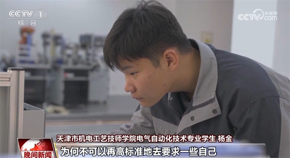 天津市機(jī)電工藝技師學(xué)院電氣自動(dòng)化技術(shù)專業(yè)學(xué)生 楊金:讓每一顆螺絲、每一個(gè)部件都能發(fā)揮出它最大的作用,這就是我的需要和目標(biāo)了。(未來希望)自主去研發(fā)需要使用的機(jī)器,可以去創(chuàng)造(更多)屬于咱們(國人)自己的(電氣化)產(chǎn)品。