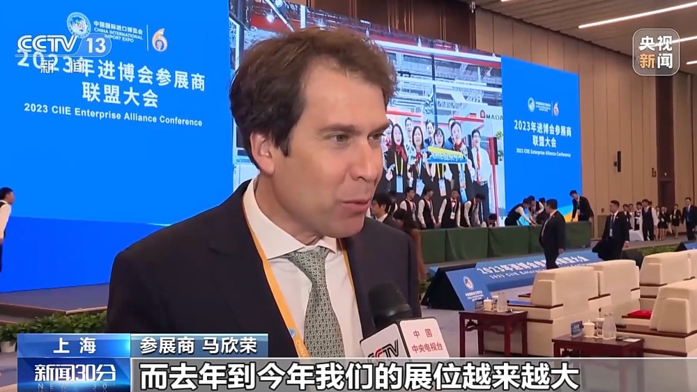 總臺央視記者 楊曜語:我現在所在的是第六屆進博會參展商聯盟大會的現場,第六屆進博會時間還未過半,就有60余家企業(yè)確認簽約明年的進博會。
