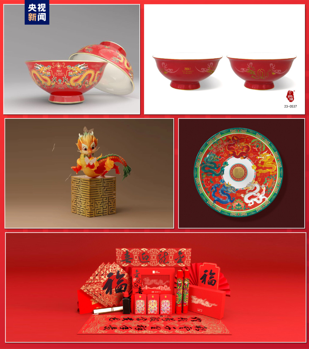 活動儀式上同步發(fā)布的總臺文創(chuàng)“龘龘春碗”,是中央廣播電視總臺《2024年春節(jié)聯(lián)歡晚會》在甲辰龍年來臨之際專屬發(fā)行的生肖福禮,分為藝術(shù)珍藏版和雙龍典藏版。